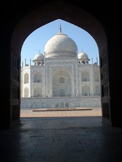 É sábado e acordo com um princípio de resfriado (coisa rara de acontecer comigo). Enfrentei muito frio na madrugada. Aqui no interior da Índia é difícil encontrar chocolate em barra. Estava sem nenhum recurso, tremi demais na madruga, não dormi satisfatoriamente. Faço fotos com as coreanas. Após tomar um cafe da manhã reforçado, na companhia da jovem alemã, mudo de hotel. Vou para o Sheela Inn, hotelzinho novo, porém, mais distante do Taj Mahal. Depois, driblando o cerco agressivo de vendedores, vou direto a entrada mais próxima do Taj. O palácio - na verdade o túmulo de uma rainha, construído pelo imperador Shah Jahan, no século XVII. É uma homenagem do imperador muçulmano a sua esposa mais querida, Mumtaz Mahal, que morreu durante o parto de seu 14º filho, em 1631. Mereceu o título de uma das 7 maravilhas do mundo, que ostentou por muito tempo.