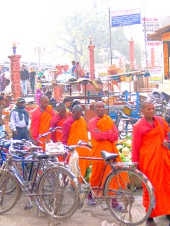 Na manhã deste sábado voltei ao Mahabodh Temple e assisti ao final das celebrações dos monges e outros budistas da Cagiupay Sangha, com a presenca de milhares de exilados tibetanos. O café da manhã que tomei no Shiva Hotel, não me fez bem. Mas superei o problema antes de embarcar de volta a Gaya, a bordo de um simples riquixa, lotado com 8 pessoas (o motorista sobre as coxas de dois passageiros!)