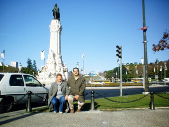 Na praça do Mosteiro dos Jerônimos, no bairro de Belém, Lisboa, visitando a nossa história