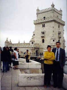 Eu e Fátima na Torre de Belém, à margem do Tejo