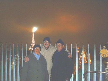 Observe a primeira foto acima, à esquerda. Ela foi tirada por um turista americano, a meu pedido, por volta das 23h de 29 de janeiro passado, tão logo eu e os anciãos ao meu lado - meus pais, Tidão e Maria de Jesus - alcançamos o topo do Arco do Triunfo, na avenida Champs Elysées, em Paris. Esqueça os personagens e se concentre na imagem ao fundo: a majestosa Torre Eiffel, cintilando multicor numa noite de inverno, anunciando ao mundo um tempo de esplendor na Europa. Desde a virada do milênio, a cada 15 minutos a torre de 7 000 toneladas de aço pisca em tons diversos, enquanto de seu cimo holofotes girantes lançam raios poderosos sobre a chamada cidade-luz. Inesquecível!
