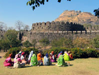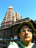 Indianas junto ao Forte Daulatabad, na hora do almoço, e JM no Templo Grishneshwar, próximo a Ellora