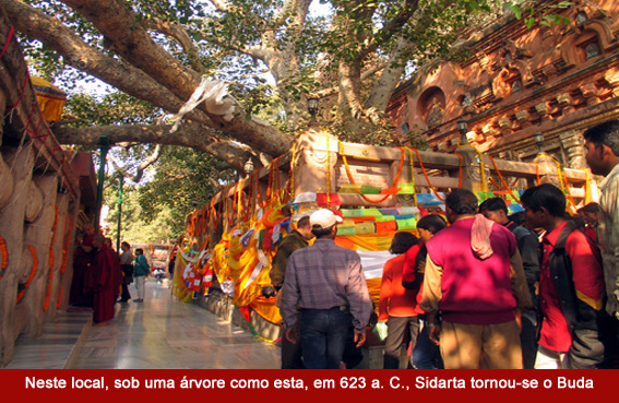 Apesar da multidão, o ambiente transpira paz e tranquilidade. No Mahabodhi - na verdade uma estupa (relicário ou tumba budista) cercada de dezenas de outras menores - uma enorme imagem dourada de Buda é venerada ao mesmo tempo por budistas e hinduístas. Para os hindus, Sidarta foi uma encarnação de Vishnu, a mesma divindade manifestada em Rama e Krishna. É possível distinguí-los pelos ruídos e posturas durante as cerimônias, os budistas sempre mais parcimoniosos. E, às vezes, pela encrencas no comitê de administração do templo, onde os hinduístas são maioria. Nem isso nem o fato de que a figueira cultuada agora não é a mesma que acolheu o Buda meditante, destruída pelo imperador Ashoka antes de sua conversão ao budismo, tiram o brilho desse lugar simbólico e especial. A árvore e o Mahabodi, erguido no século III pelo mesmo Ashoka, arrependido, e depois dilapidado e reconstruído no século XIX, fazem parte do patrimônio cultural da humanidade, protegido pela Unesco. Como no passado, eles continuam despertando olhares devotos ou admiradores.