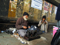 Monges da Cagiupay Sangha, em Bodhgaya e, abaixo, o caos diário do trânsito em Delhi.