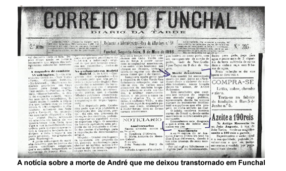 Sozinho, na penumbra de uma pequena cabine no Arquivo Regional da Madeira, edifício moderno erguido entre o mar e as escarpas, no bairro alto de Santo Antônio, manejo o projetor de microfilme enquanto procuro, na edição do Correio do Funchal de 9 de maio de 1898, a notícia que me levou até ali. Minha ansiedade crescera à proporção que eu folheava outros jornais, sem conseguir achar o registro esperado. O fato que motivou a pesquisa ocorreu provavelmente na noite de 8 de maio ou na madrugada que a sucedeu e, certamente por isso, é que o vespertino de apenas quatro páginas, formato tablóide, foi o primeiro a noticiá-lo.