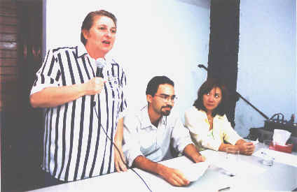 Sandra (em pé), Marlos e Norma na sede do Sapiens: soluções para a violência juvenil
